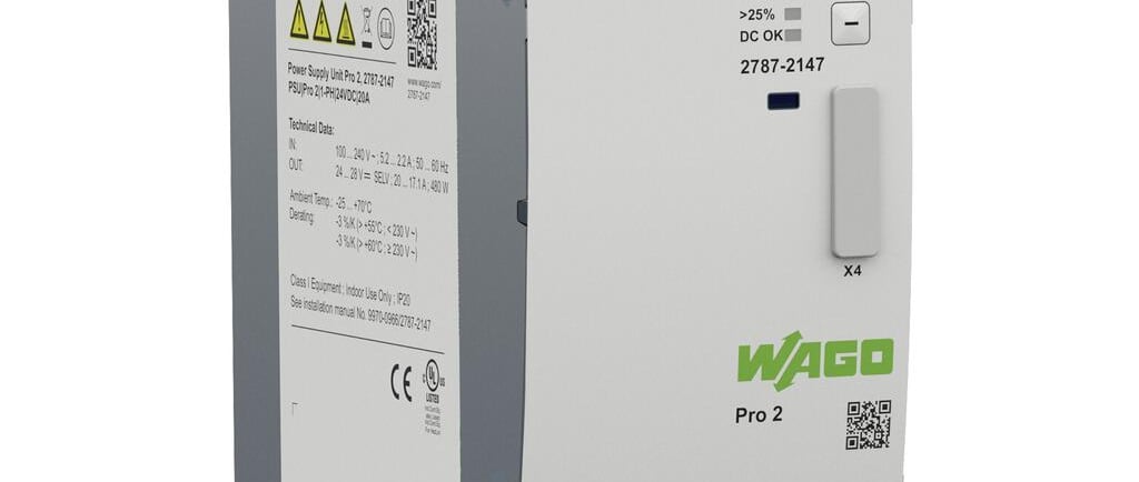 A fonte Pro 2 é descrita como “a melhor fonte de alimentação que já construímos” pela WAGO, com eficiência de até 96 %. WAGO USA