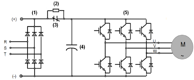 O retificador converte a alimentação AC da rede (geralmente trifásica) em uma tensão DC para alimentar o link intermediário. As topologias mais comuns são: