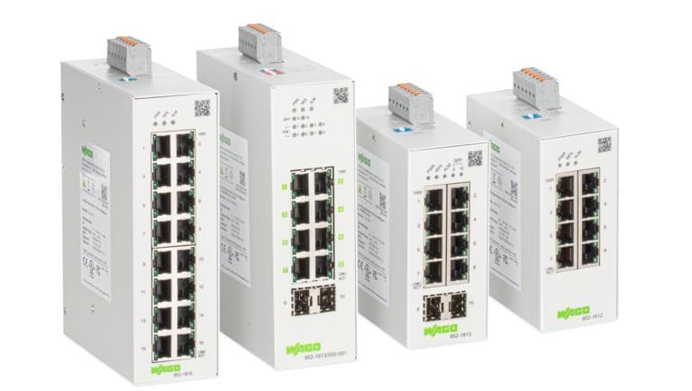 A WAGO é uma marca muito citada no mercado de automação, com linha robusta de switches Ethernet industriais. Seus modelos incluem versões não gerenciáveis e “Lean Managed” com dashboards simples, suporte a PoE e módulos SFP para fibra óptica.