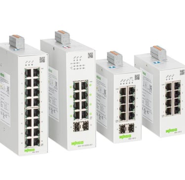Switches industriais costumam vir em versões com 4, 5, 8, 16 portas (e até mais). A escolha depende da quantidade de dispositivos no segmento. Um switch de 4 ou 5 portas é útil para pequenos racks ou estações, enquanto um de 8 ou 16 portas pode concentrar mais dispositivos. Alguns modelos também oferecem portas extras SFP para uplink. Por exemplo, a WAGO oferece versões com 8 portas RJ45 + módulos SFP.